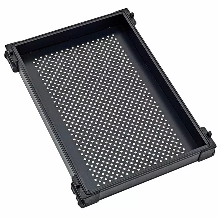 - A ridge/recess compression seal and perforated base