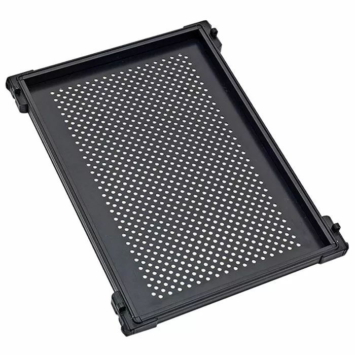 - A ridge/recess compression seal and perforated base